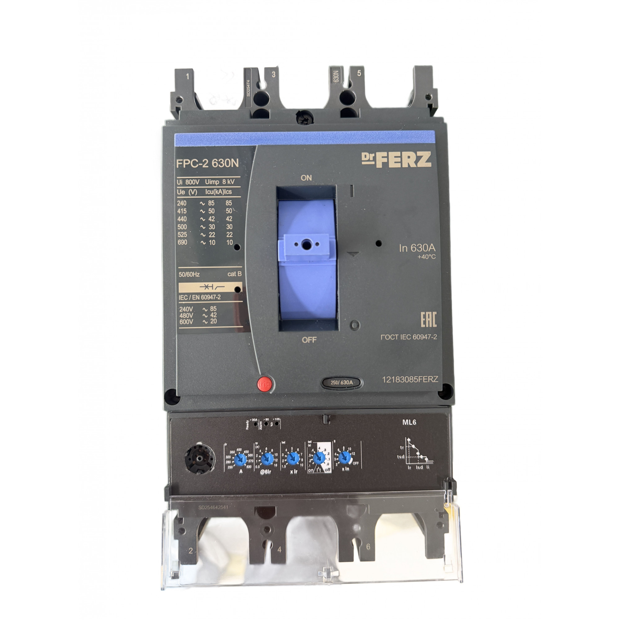 Автоматический выключатель в литом корпусе FERZ FPC-26-N-630-ML6/3P 630 А 50 кА предназначен для защиты распределительных сетей переменного тока от перегрузки и короткого замыкания. Трехполюсное исполнение и типоразмер 630 позволяют использовать аппарат в составе ВРУ, ГРЩ и силовых шкафов на коммерческих и промышленных объектах.