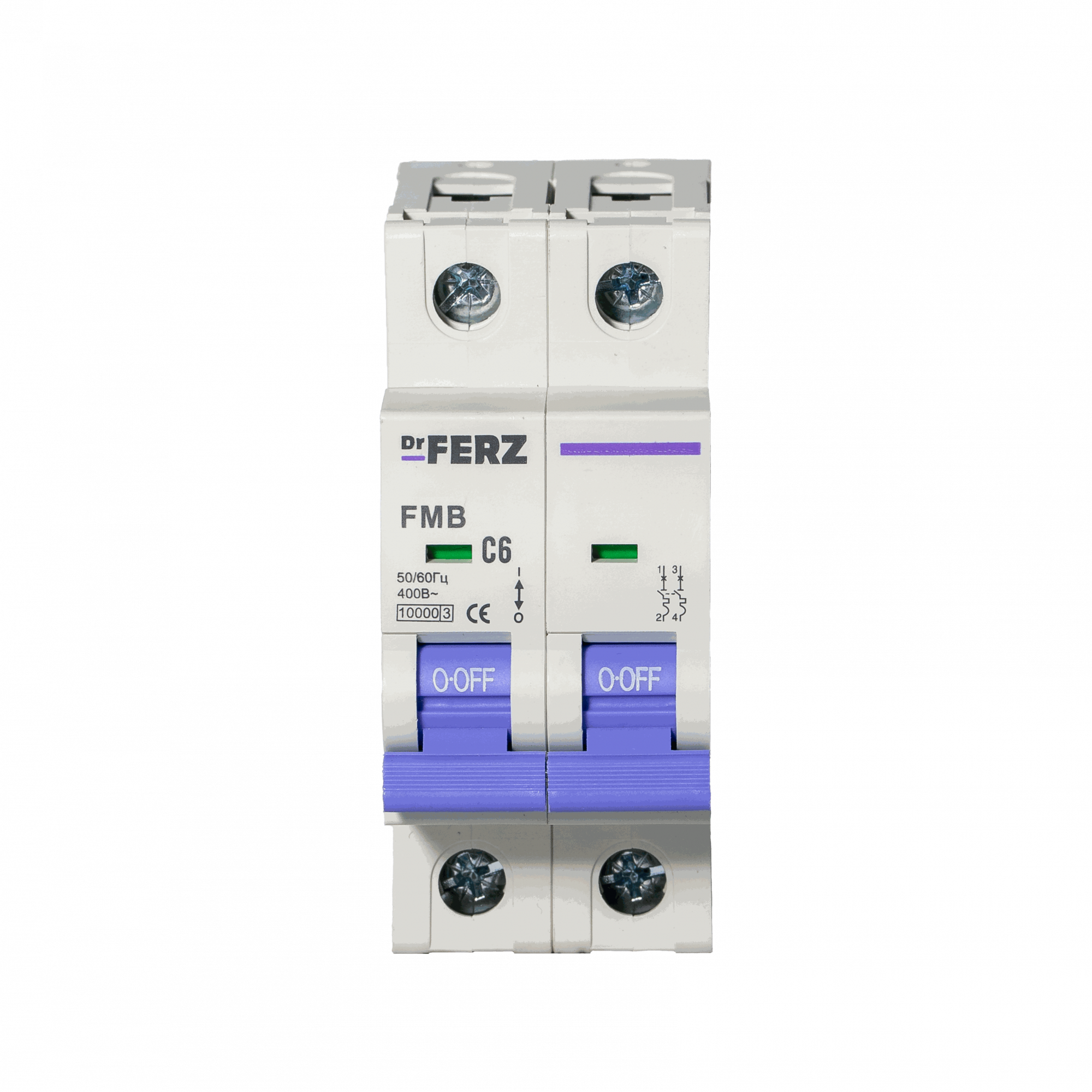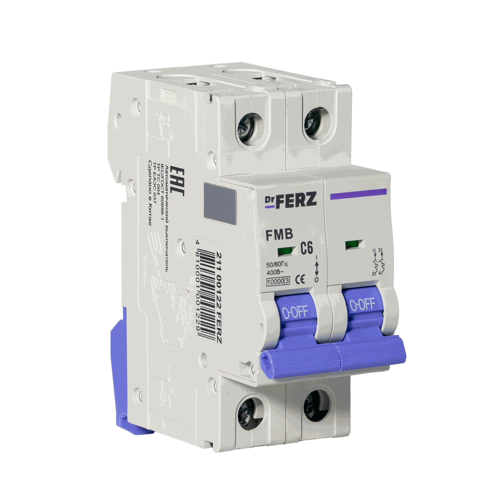 Модульный автоматический выключатель Dr.FERZ серии FMB-C предназначен для защиты цепей переменного тока AC от перегрузок и короткого замыкания. Данная модификация имеет исполнение 2P, номинальный ток 6 А, характеристику срабатывания C и предельную отключающую способность 10 кА.