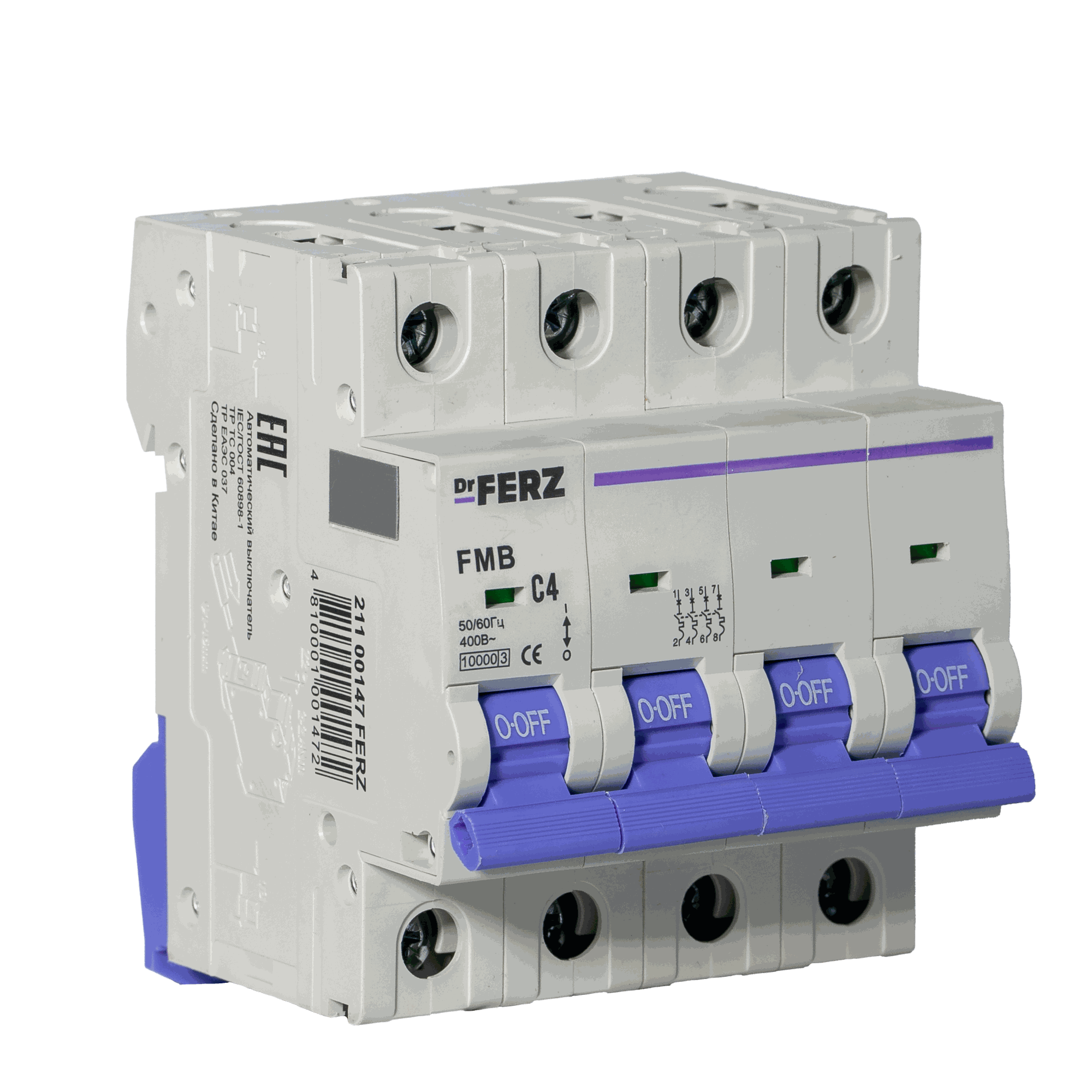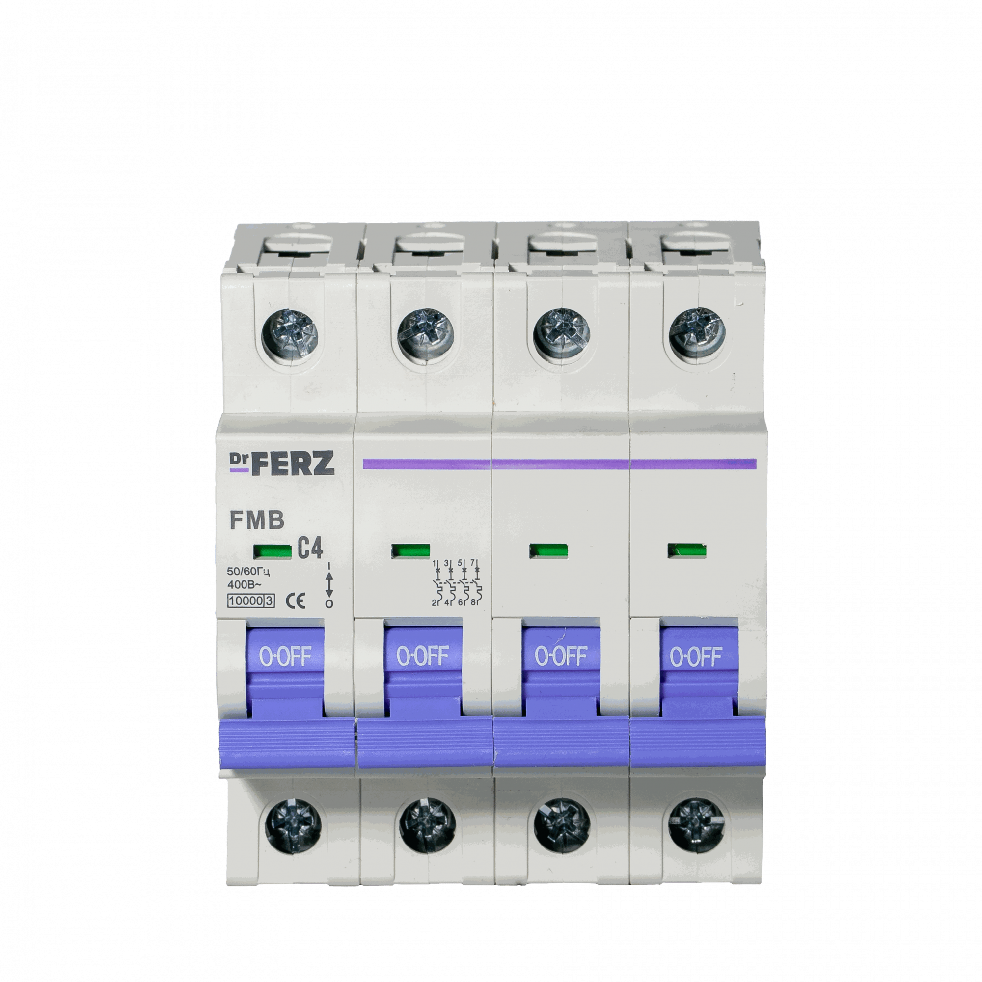 Модульный автоматический выключатель Dr.FERZ серии FMB-C предназначен для защиты цепей переменного тока AC от перегрузок и короткого замыкания. Данная модификация имеет исполнение 4P, номинальный ток 4 А, характеристику срабатывания C и предельную отключающую способность 10 кА.