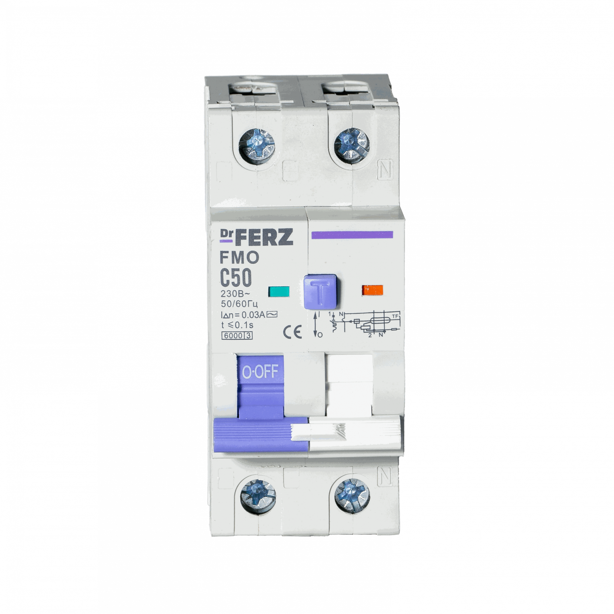 FMO-EL-1P+N 50A 30mA 6kA тип AC, х-ка C, 2M Диф. автомат FERZ