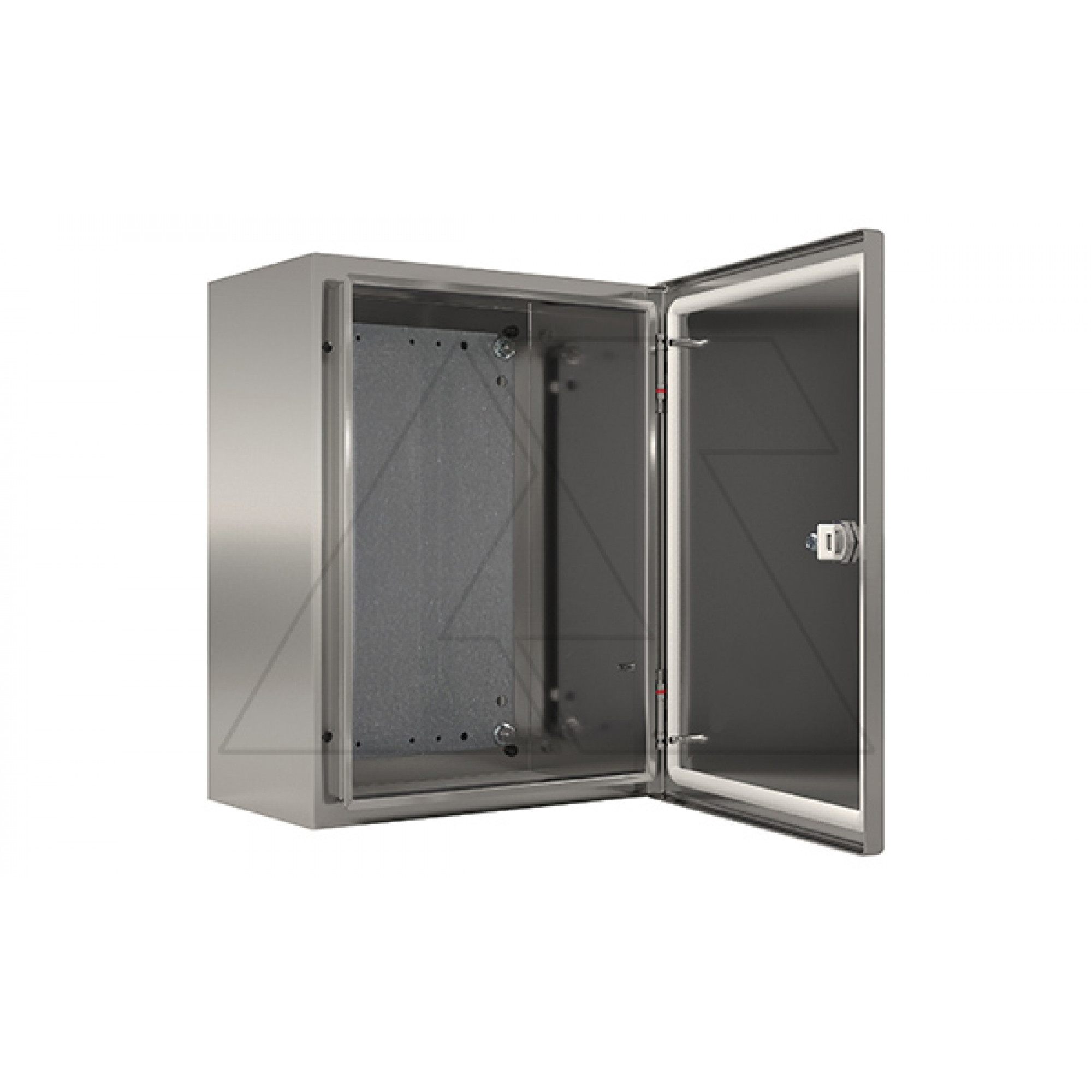 Корпус шкафов ECOR выполнен по моноблочной технологии из цельного листа нержавеющей стали с усиленной конструкцией. Такое решение обеспечивает высокую жёсткость, устойчивость к коррозии и долговечность при эксплуатации во влажной, пыльной или химически активной среде. В стандартную комплектацию входит монтажная панель, система заземления, замок и уплотнение двери, обеспечивающее степень защиты до IP66.