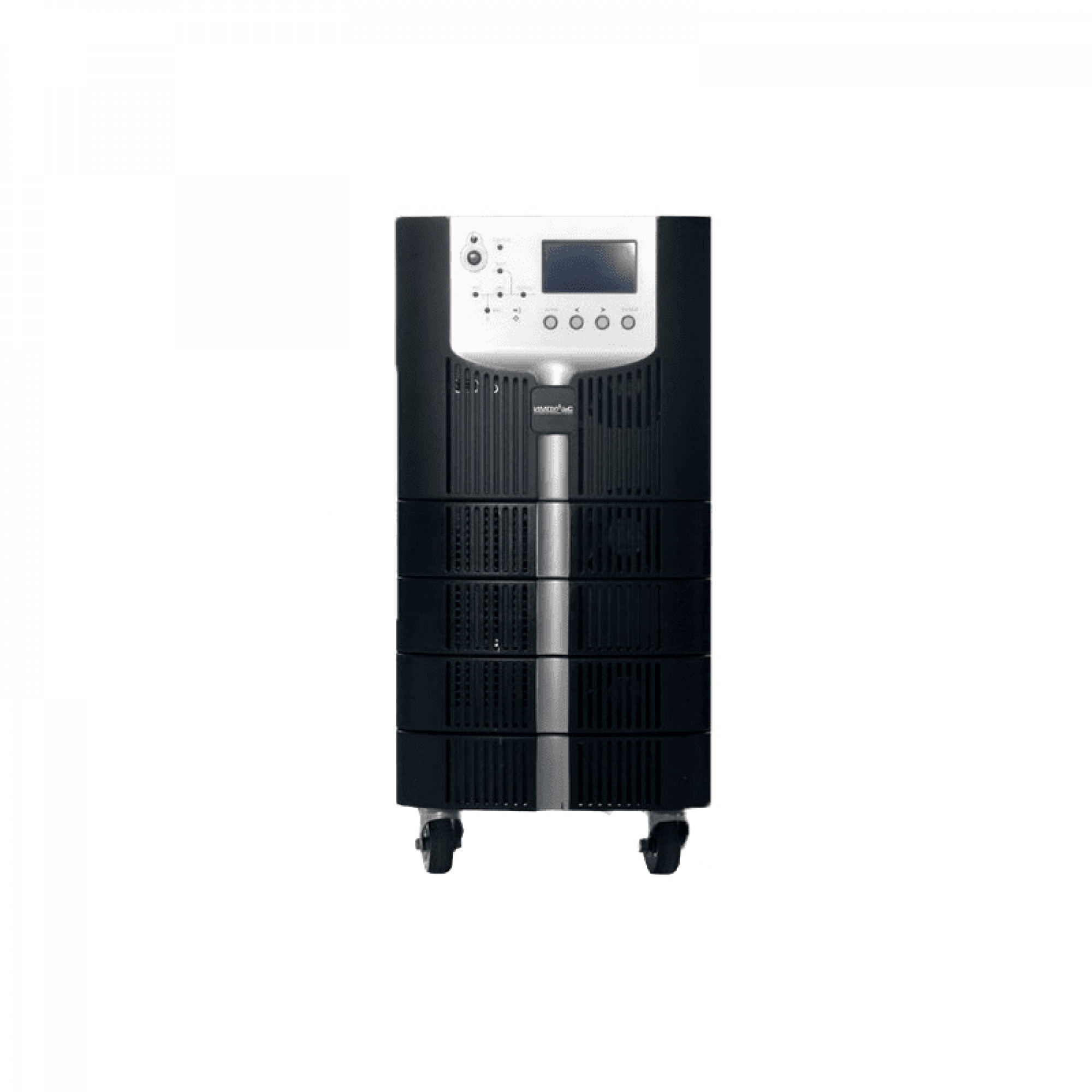 Входные напряжения — от 304 до 478 В при 100% нагрузке, ниже с пропорциональным снижением. Частота 40–70 Гц. Выход трёхфазный, 380/400/415 В, ток от 15 до 121 А по моделям. Перегрузка выдерживается: до 110% — час, свыше 150% — мгновенное отключение. Плюс «холодный старт» от батарей и сенсорный 7-дюймовый LCD для мониторинга.