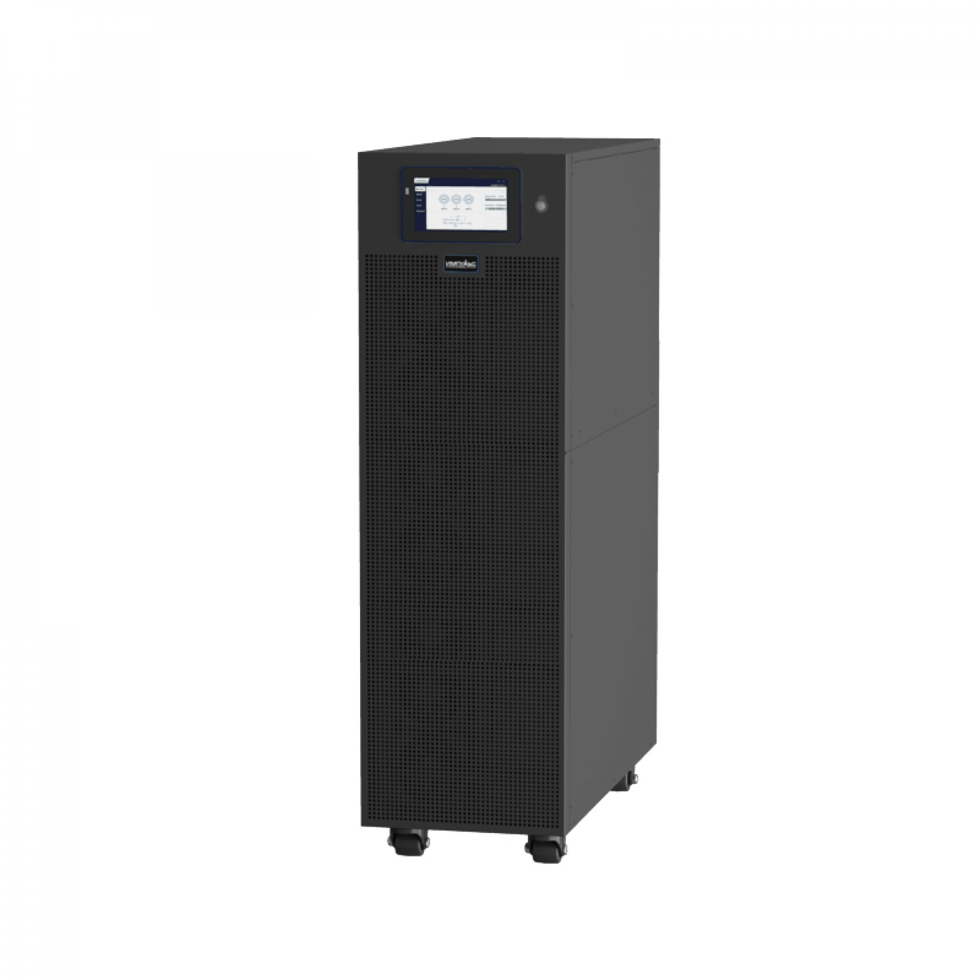 Входные напряжения — от 304 до 478 В при 100% нагрузке, ниже с пропорциональным снижением. Частота 40–70 Гц. Выход трёхфазный, 380/400/415 В, ток от 15 до 121 А по моделям. Перегрузка выдерживается: до 110% — час, свыше 150% — мгновенное отключение. Плюс «холодный старт» от батарей и сенсорный 7-дюймовый LCD для мониторинга.