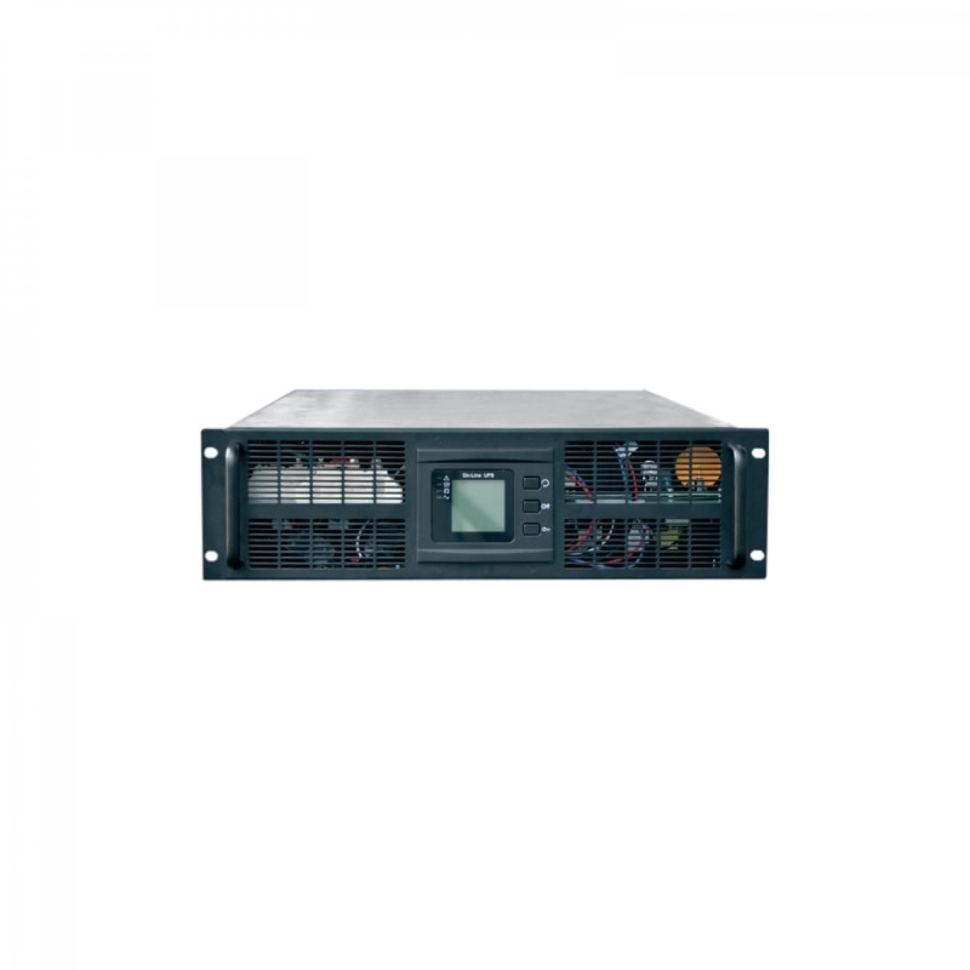 Мощность начинается с 10 кВА и доходит до 40 кВА в одном корпусе. А если нужно больше — ставят несколько шкафов параллельно, до 320 кВА получается без особых танцев с бубном. Модульность полная: силовые модули по 10 кВА горячей замены, байпас тоже модульный, даже вентиляторы меняются на работающем устройстве. Обслуживающему инженеру остаётся только открыть дверцу и вытащить неисправный блок — без отключения нагрузки.