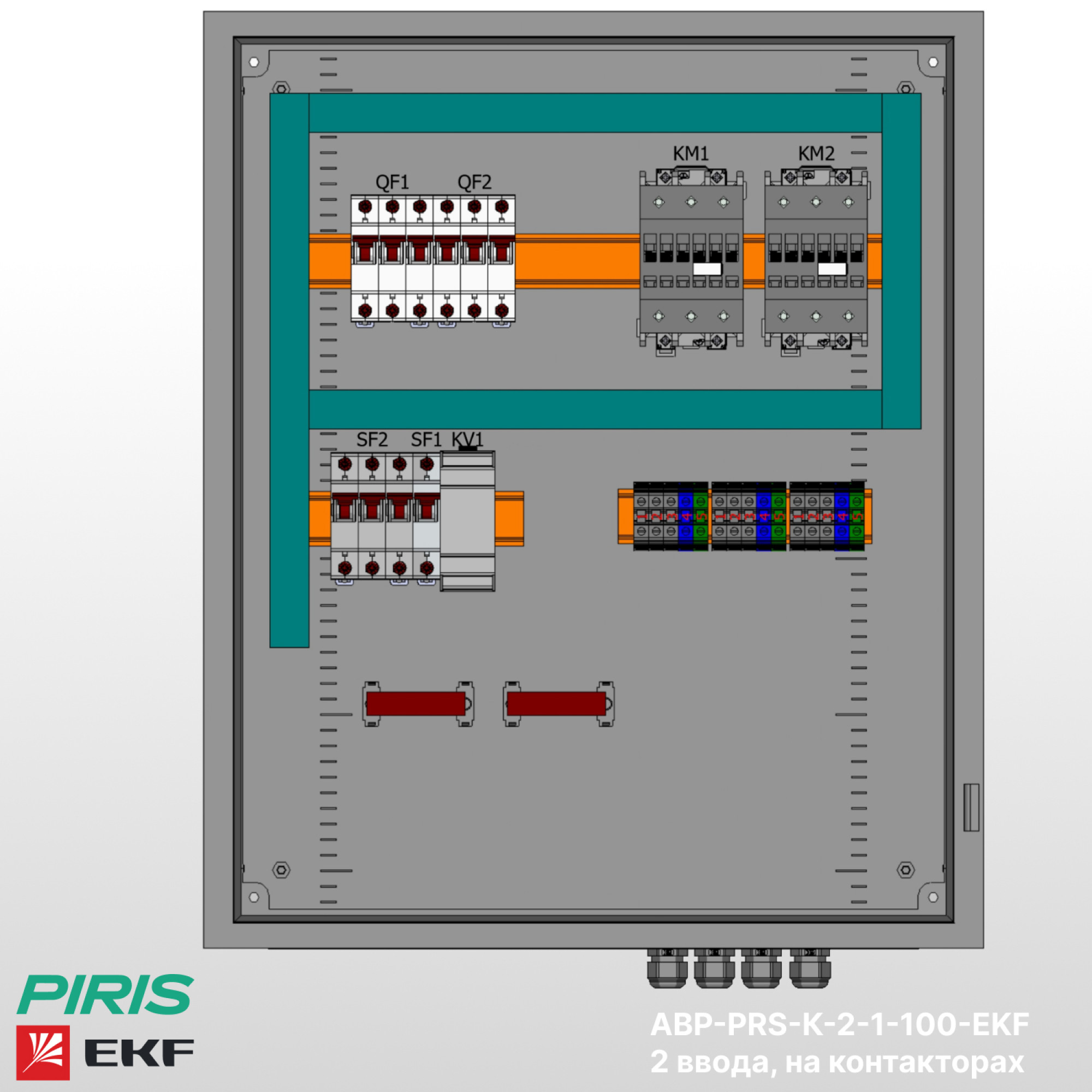 Шкаф АВР-PRS-К-2-1-100-EKF — типовой шкаф автоматического ввода резерва на контакторах EKF с номинальным током 100А и автоматических выключателях EKF. Обеспечивает автоматическое переключение нагрузки на резервный ввод при аварии на основном с функцией самовозврата.