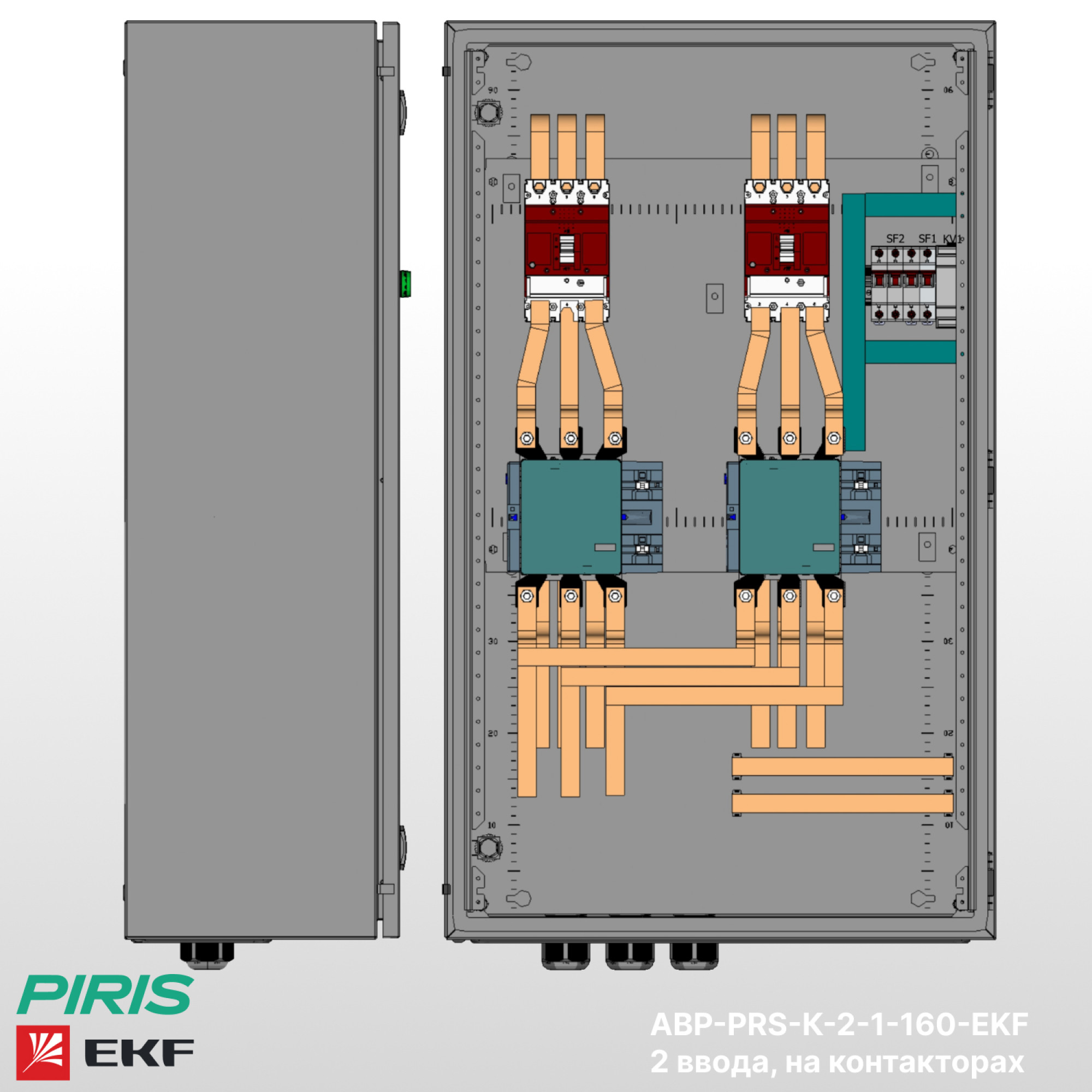 Шкаф АВР-PRS-К-2-1-200-EKF — типовой шкаф автоматического ввода резерва на контакторах EKF с номинальным током 200А и автоматических выключателях EKF. Обеспечивает автоматическое переключение нагрузки на резервный ввод при аварии на основном с функцией самовозврата.