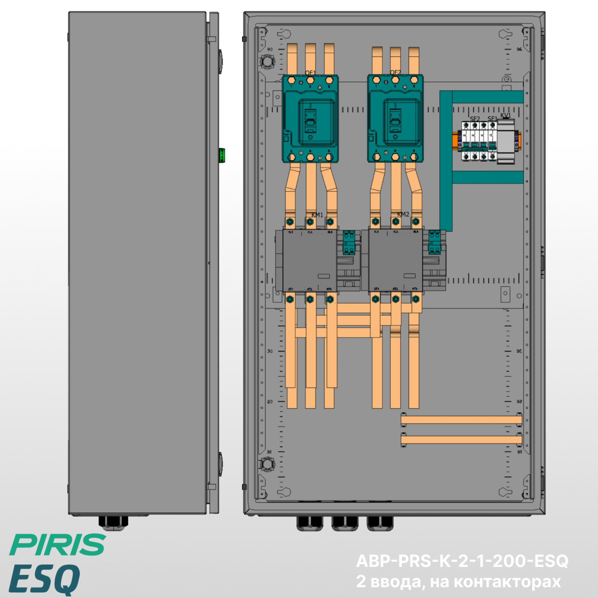 Шкаф АВР-PRS-К-2-1-200-ESQ — типовой шкаф автоматического ввода резерва на контакторах ESQ с номинальным током 200А и автоматических выключателях ESQ. Обеспечивает автоматическое переключение нагрузки на резервный ввод при аварии на основном с функцией самовозврата.