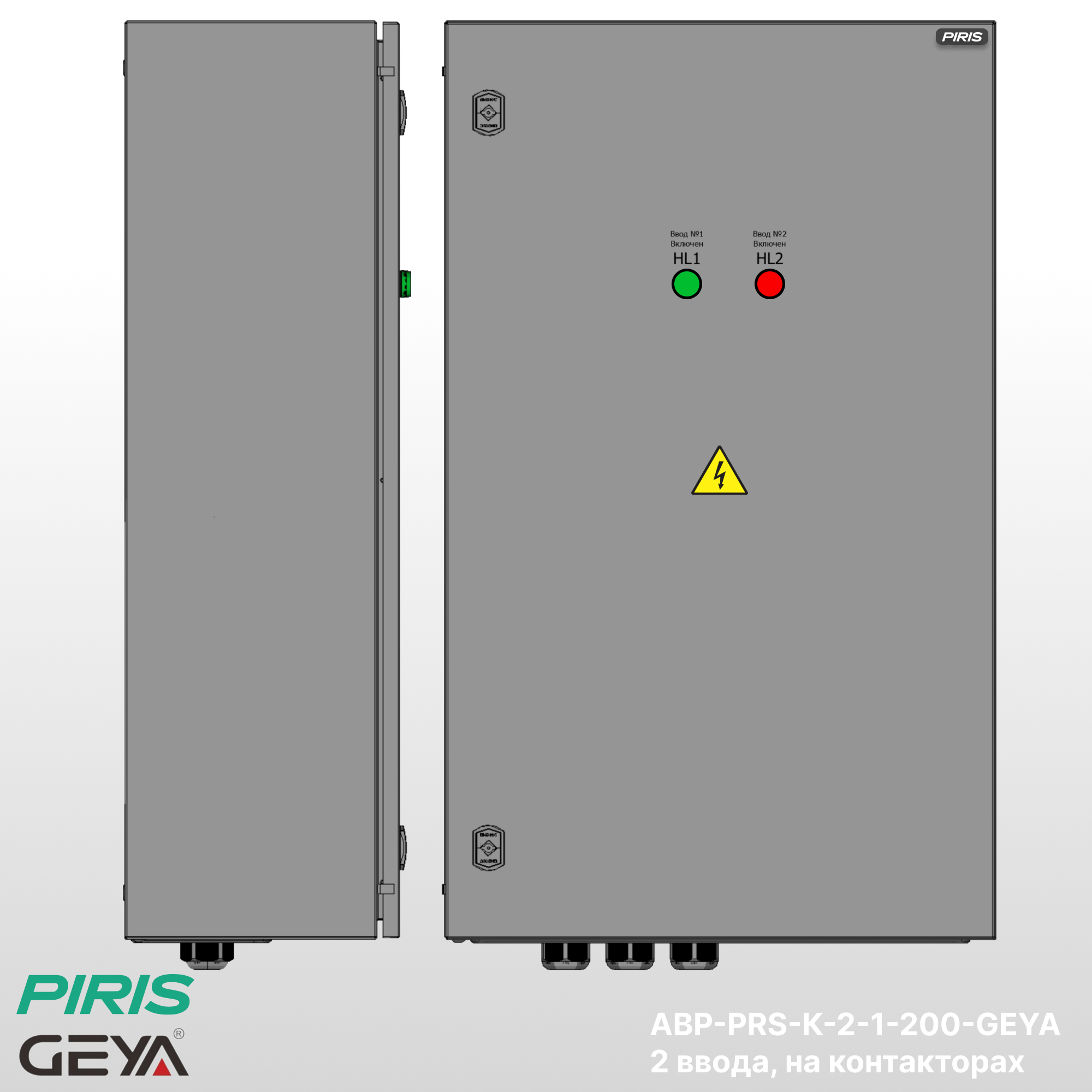 Шкаф АВР-PRS-К-2-1-200-GEYA — типовой шкаф автоматического ввода резерва на контакторах GEYA с номинальным током 200А и автоматических выключателях GEYA. Обеспечивает автоматическое переключение нагрузки на резервный ввод при аварии на основном с функцией самовозврата.