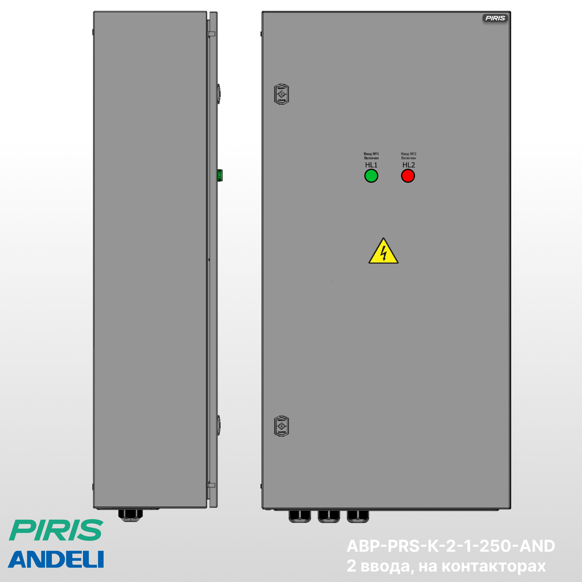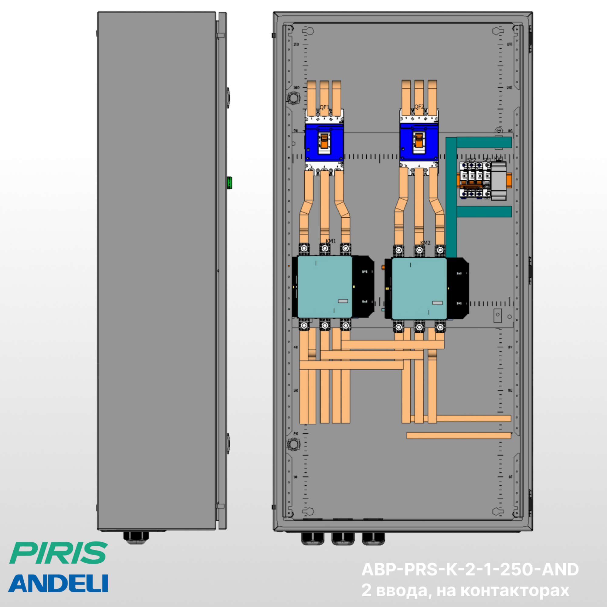 Шкаф АВР-PRS-К-2-1-250-AND — типовой шкаф автоматического ввода резерва на контакторах Andeli с номинальным током 250А и автоматических выключателях Andeli. Обеспечивает автоматическое переключение нагрузки на резервный ввод при аварии на основном с функцией самовозврата.