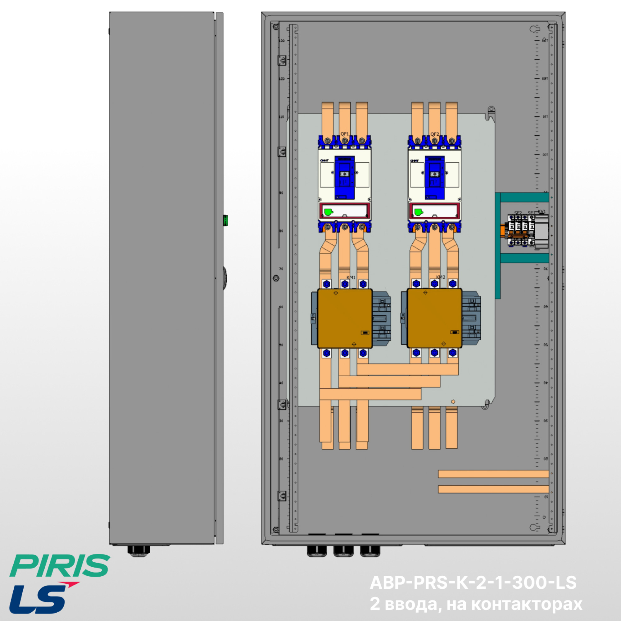 Шкаф АВР-PRS-К-2-1-300-LS — типовой шкаф автоматического ввода резерва на контакторах LS с номинальным током 300А и автоматических выключателях LS. Обеспечивает автоматическое переключение нагрузки на резервный ввод при аварии на основном с функцией самовозврата.