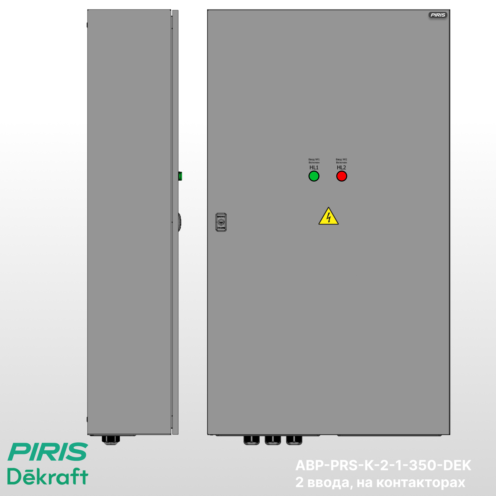 Шкаф АВР-PRS-К-2-1-350-DEK — типовой шкаф автоматического ввода резерва на контакторах Dekraft с номинальным током 350А и автоматических выключателях Dekraft. Обеспечивает автоматическое переключение нагрузки на резервный ввод при аварии на основном с функцией самовозврата.