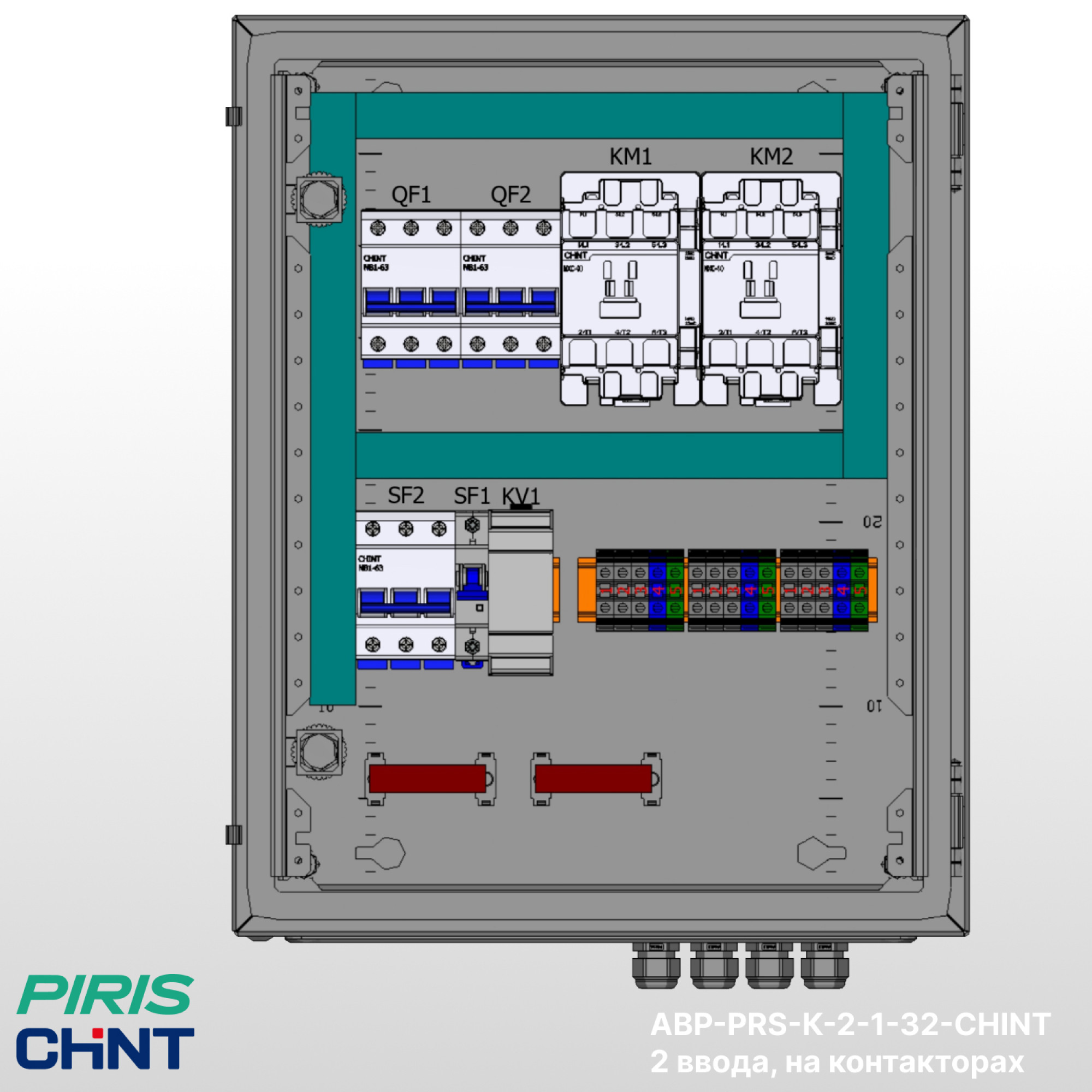 Шкаф АВР-PRS-К-2-1-40-CHINT — типовой шкаф автоматического ввода резерва на контакторах CHINT с номинальным током 40А и автоматических выключателях CHINT. Обеспечивает автоматическое переключение нагрузки на резервный ввод при аварии на основном с функцией самовозврата.