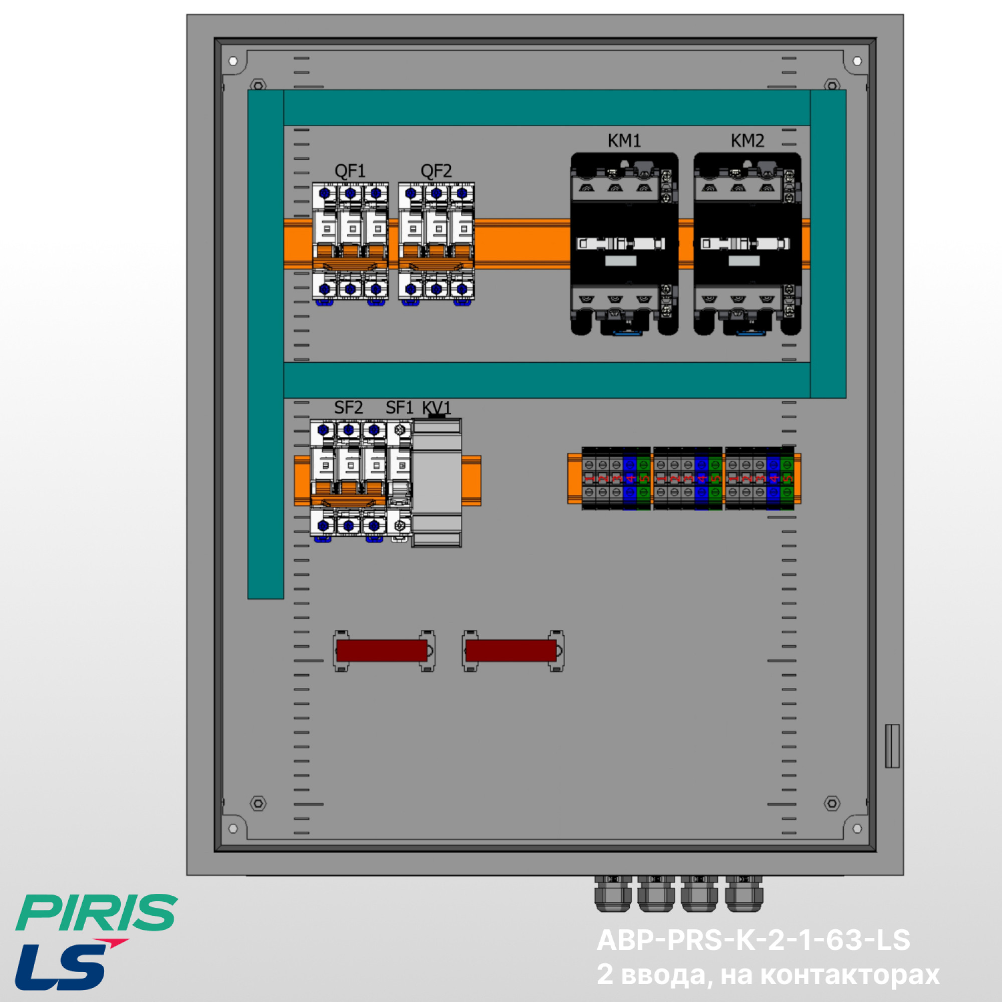 Шкаф АВР-PRS-К-2-1-63-LS — типовой шкаф автоматического ввода резерва на контакторах LS с номинальным током 63А и автоматических выключателях LS. Обеспечивает автоматическое переключение нагрузки на резервный ввод при аварии на основном с функцией самовозврата.