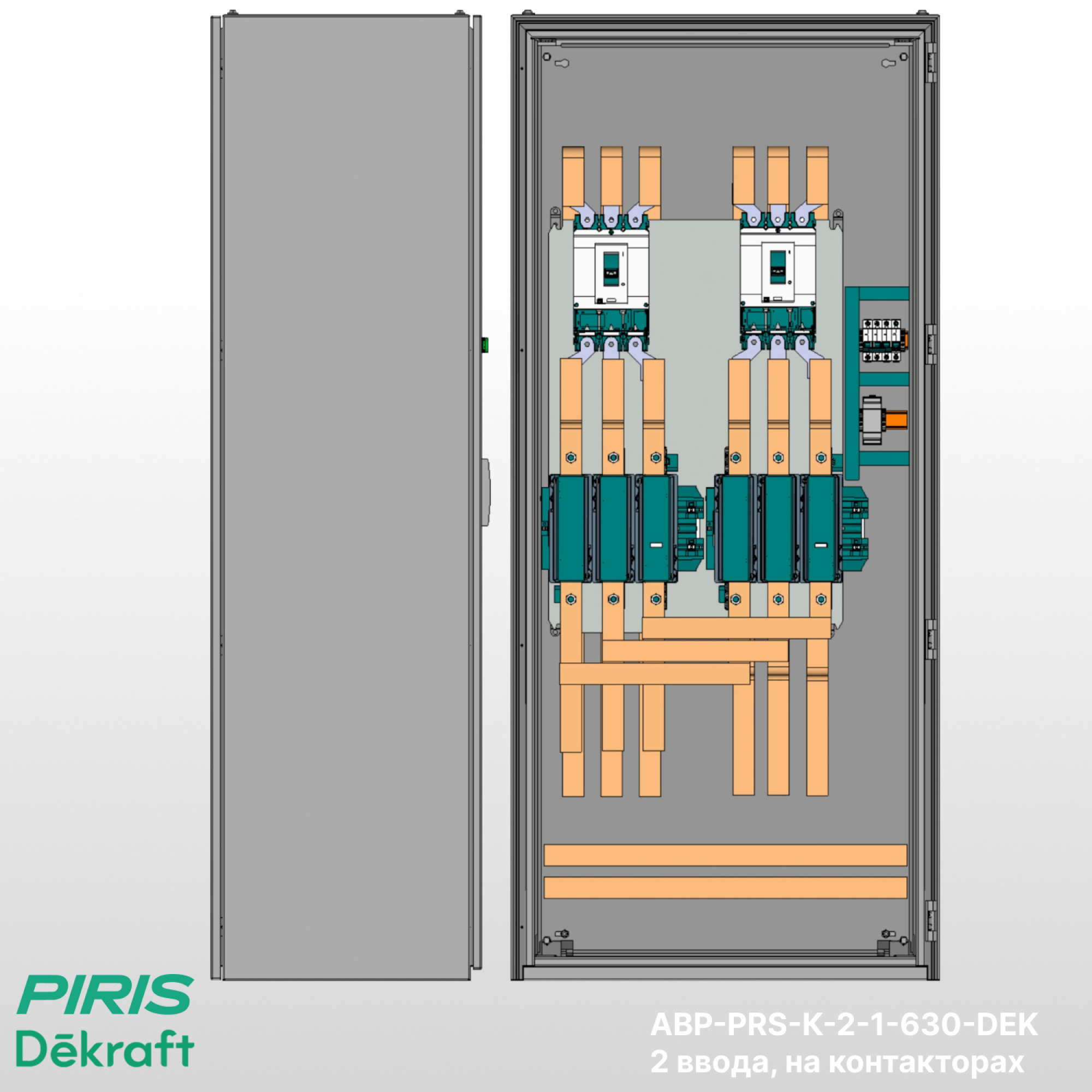 Шкаф АВР-PRS-К-2-1-630-DEK — типовой шкаф автоматического ввода резерва на контакторах Dekraft с номинальным током 630А и автоматических выключателях Dekraft. Обеспечивает автоматическое переключение нагрузки на резервный ввод при аварии на основном с функцией самовозврата.