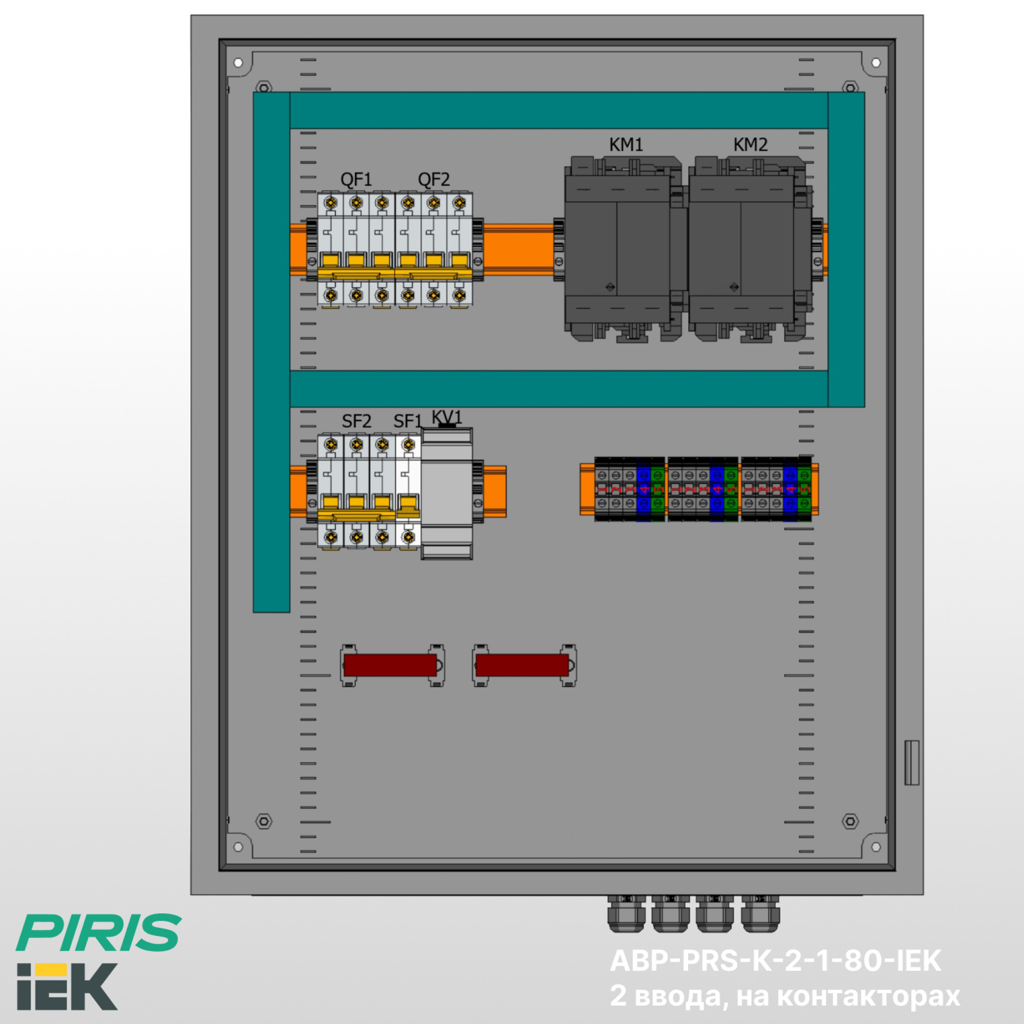 Шкаф АВР-PRS-К-2-1-80-IEK — типовой шкаф автоматического ввода резерва на контакторах IEK с номинальным током 80А и автоматических выключателях IEK. Обеспечивает автоматическое переключение нагрузки на резервный ввод при аварии на основном с функцией самовозврата.