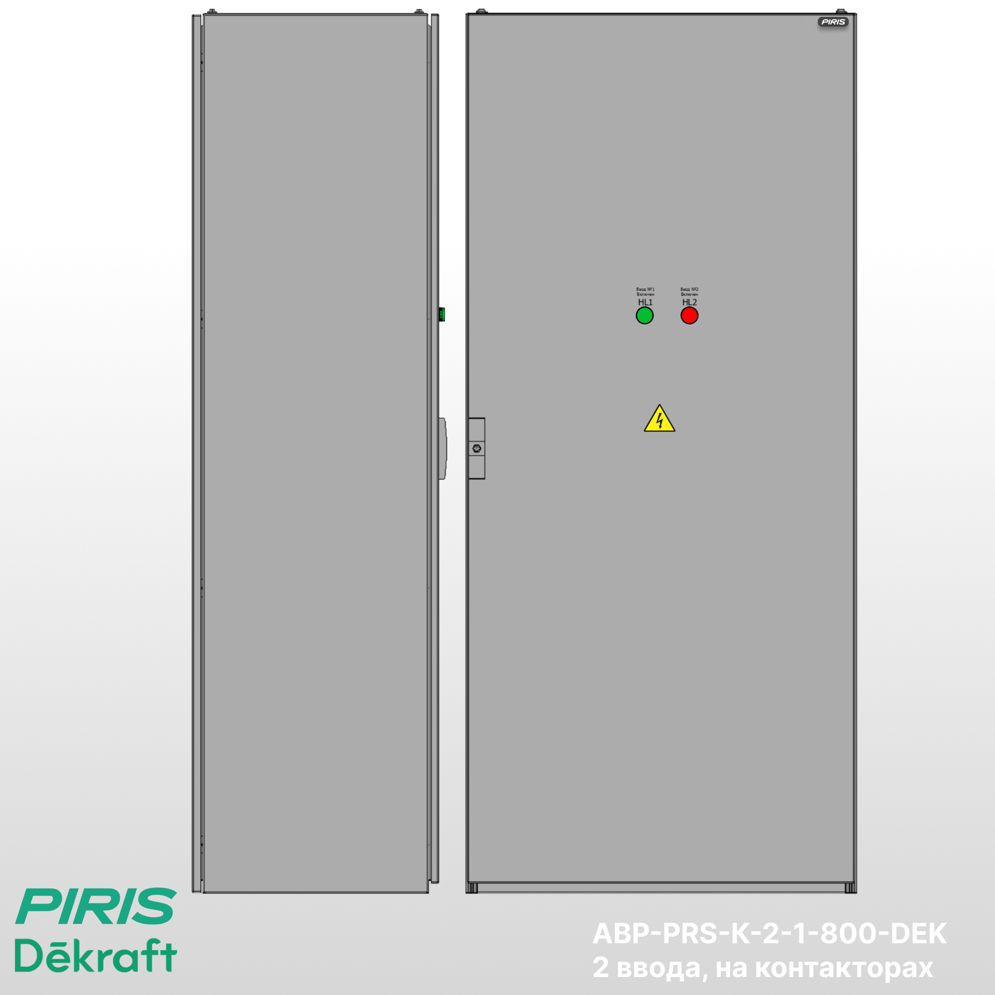 Шкаф АВР-PRS-К-2-1-800-DEK — типовой шкаф автоматического ввода резерва на контакторах Dekraft с номинальным током 800А и автоматических выключателях Dekraft. Обеспечивает автоматическое переключение нагрузки на резервный ввод при аварии на основном с функцией самовозврата.