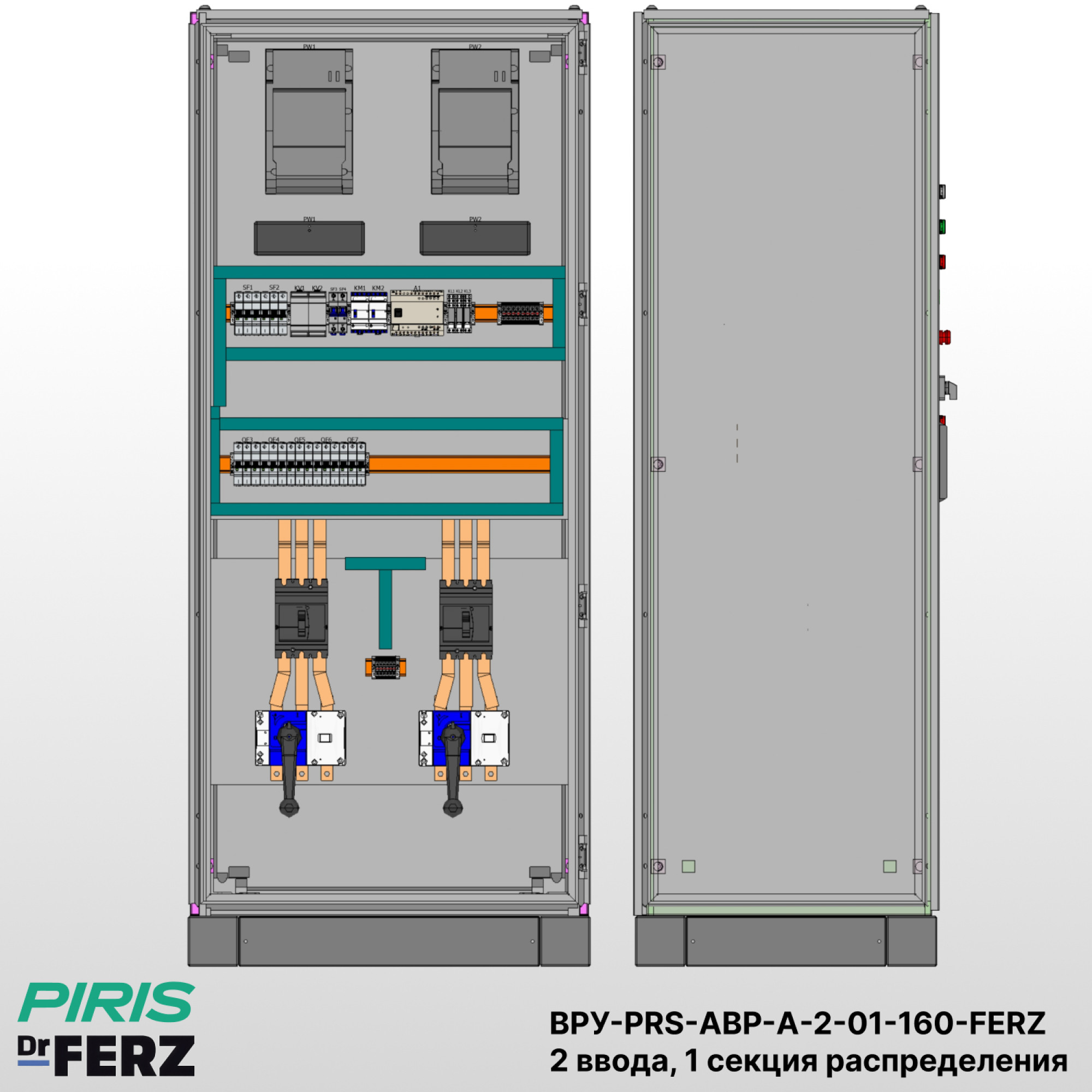 ВРУ-PRS-АВР-А-2-01-160-DKC — вводно-распределительное устройство с АВР напольного исполнения в корпусе 1800×800×600 (IP31). Предназначено для бесперебойного электроснабжения объектов 1-й категории надёжности.