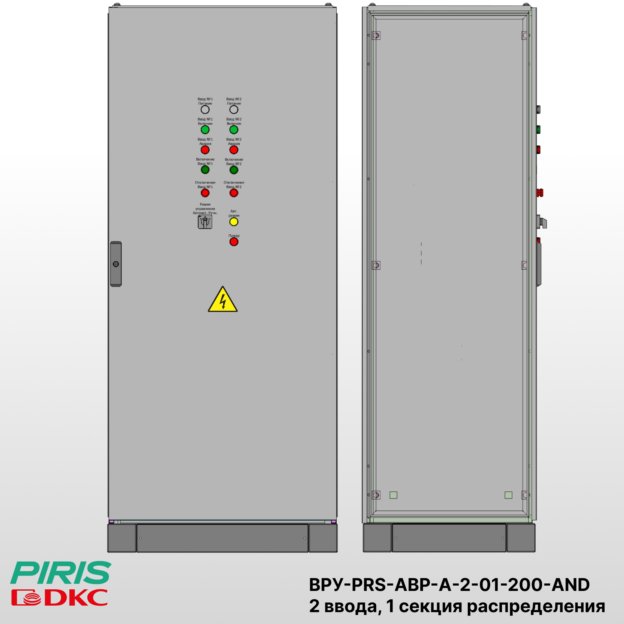 ВРУ-PRS-АВР-А-2-01-200-DKC — вводно-распределительное устройство с АВР напольного исполнения в корпусе 1800×800×600 (IP31). Предназначено для бесперебойного электроснабжения объектов 1-й категории надёжности.