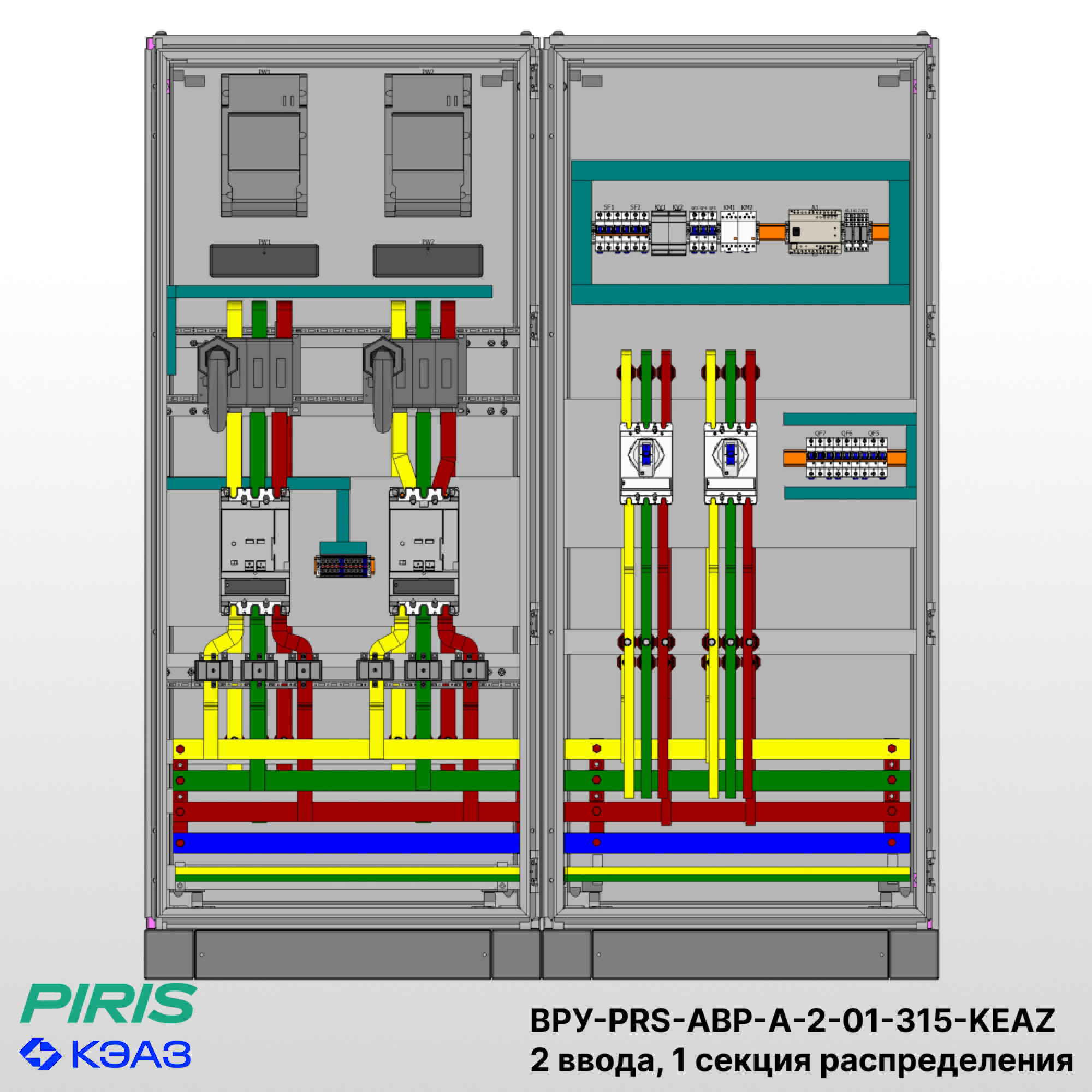ВРУ-PRS-АВР-А-2-01-315-KEAZ — вводно-распределительное устройство с АВР напольного исполнения в корпусе 1800×1600×600 (IP31). Предназначено для бесперебойного электроснабжения объектов 1-й категории надёжности.